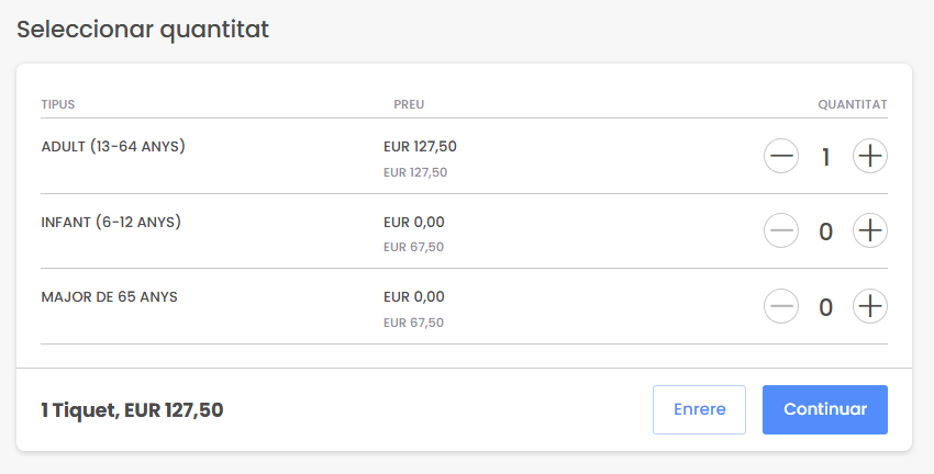 INFANT fins a 12 anys i MAJOR +65: 67,50 €